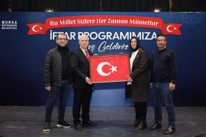 Bursa Büyükşehir Belediyesi tarafından düzenlenen iftar programında şehit aileleri ve gazilerle bir araya gelen Başkan Mustafa Bozbey, “Aziz şehitlerimizin bizlere emaneti olan ailelerinin, yakınlarının ve kahraman gazilerimizin her zaman yanındayız. Bursa, sizlerle birlikte büyük bir ailedir” dedi.