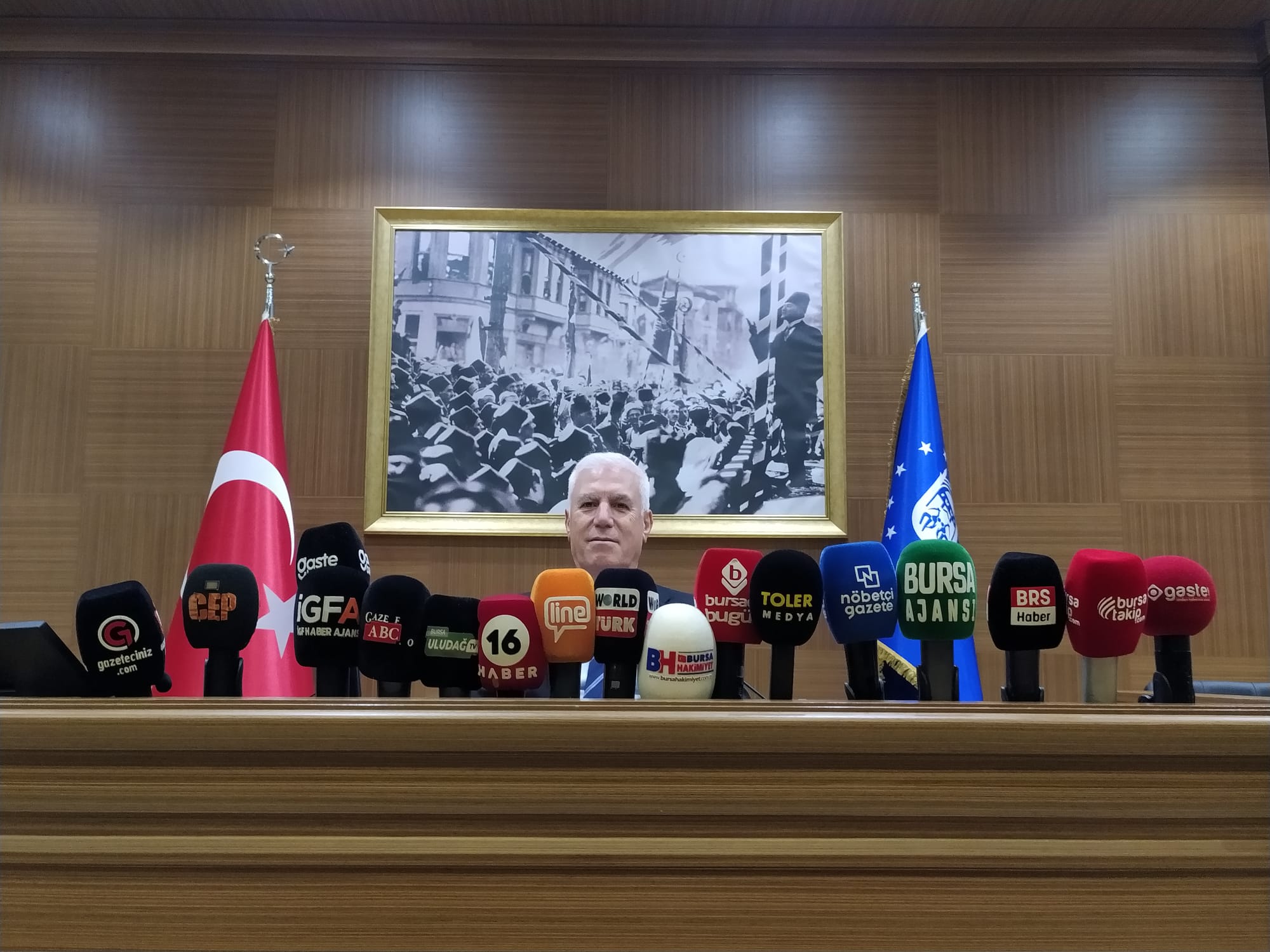 Bursa Büyükşehir Belediyesi Hizmet Binası’ndaki Meclis Toplantı Salonu’nda gerçekleştirilen birleşime, Bursa Büyükşehir Belediye Başkanı Mustafa Bozbey başkanlık etti.