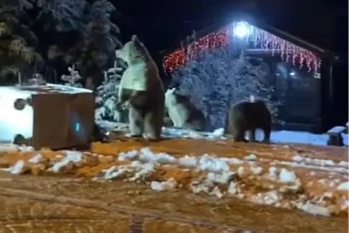 Bursa’da Uludağ yoluna çıkan bir grup, yol kenarındaki çöp konteynerinde yiyecek arayan ayılara kar topu attı. Kar topu gelince korkan hayvanlar, cep telefonuyla görüntülendi.