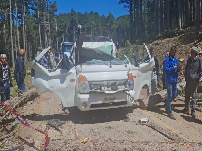 BURSA’da Uludağ yolundaki ormanda özel bir şirket tarafından kesilen ağacın, inşaat alanına malzeme taşıyan kamyonetin üzerine devrilmesi sonucu araçta bulunan Temel Kurt (35) hayatını kaybetti, Orhan Çalışkan (30) ve Vahit Sağır (37) yaralandı.