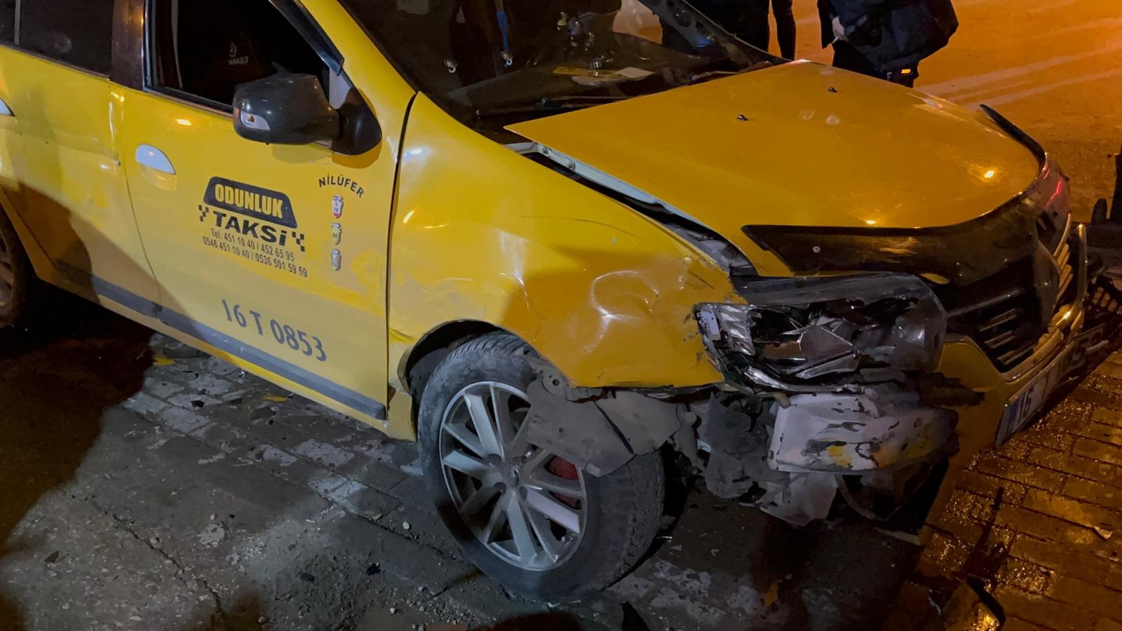 Olay, saat 01.00 sıralarında Osmangazi ilçesi Çiftehavuzlar Mahallesi Çelebi Mehmet Bulvarı’nda meydana geldi. İddiaya göre, S.A. arkadaşının sürdüğü ticari taksiyi henüz bilinmeyen nedenle gasbederek, kaçmaya başladı. Taksi sürücüsünün durumu bildirmesi üzerine polis ekipleri harekete geçti. Polisten kaçarken direksiyon hakimiyetini kaybetmesi sonucu 3 otomobile çarpan S.A.’nın kullandığı ticari taksi, savrularak refüje çıktı. Aracı refüjde terk eden S.A., bu kaz yaya olarak kaçmaya devam etti. Bölgeyi ablukaya alan polis ekiplerinin sokak sokak sürdürdüğü takibin ardından şüpheli yakalandı. S.A:’nın yaklaşık yarım saat süren kaçışı sırasında yaptığı kazalar nedeniyle terk ettiği ticari taksinin kullanılamaz halde olduğu belirlendi. Araç çekici ile kaldırılırken, olayla ilgili soruşturma başlatıldı.