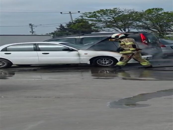 Karacabey Devlet Hastanesi’ne yakınını getiren Turgay Ç., 77 AAK 391 plakalı otomobilini saat 11.00 sıralarında otoparka park etti. Bir süre sonra aracın motor kısmından dumanlar yükselmeye başladı, ardından da alev aldı. Çevredekilerin ihbarı üzerine adrese itfaiye, polis ve sağlık ekipleri sevk edildi. Polis ekipleri yangın tüpüyle ilk müdahaleyi yaparken, kısa sürede gelen itfaiye ekipleri alevleri kontrol altına alarak söndürdü.