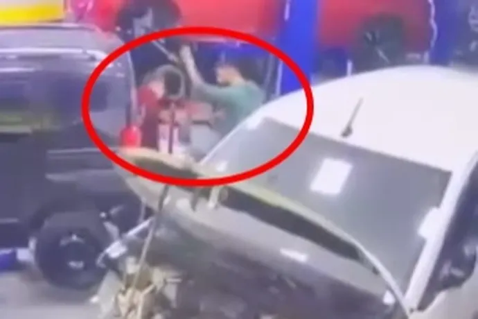 Bursa’da oto tamircisinde çırak olarak çalışan A.K. (17), görüntülü konuşan ustasının cep telefonuna baktığı gerekçesiyle darbedildi. O anlar iş yerinin güvenlik kamerasına yansıdı.