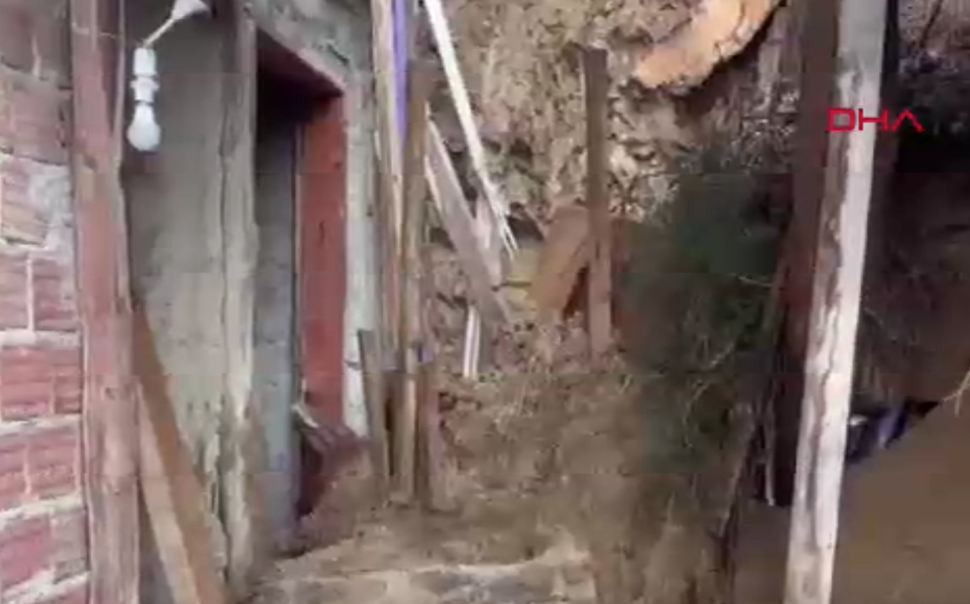 Aşırı yağışın ardından kayan toprak ve kaya parçaları, 59 yaşındaki Ayşe Yukuş’un yaşadığı 3 katlı binanın girişini kapattı. Evden çıkamayan Yukuş, durumu yakınlarına bildirdi.