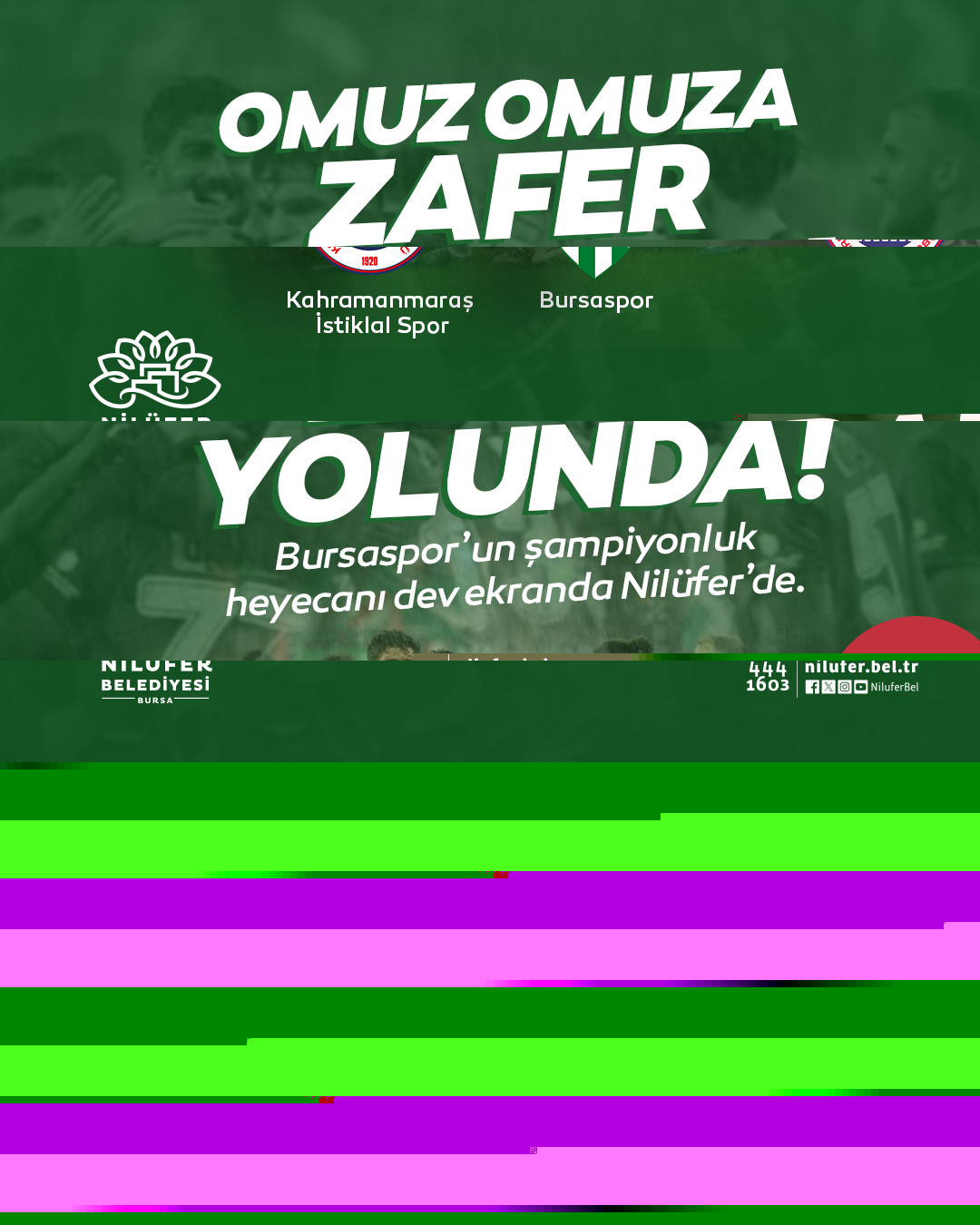 Bursaspor’un TFF 2. Lig’de Akedaş Kahramanmaraş İstiklal Spor ile deplasmanda karşılaşacağı mücadele, Üç Fidan Gençlik Parkı’nda kurulacak dev ekranda yayınlanacak. Nilüfer Belediye Başkanı Şadi Özdemir, şampiyonluk mücadelesi veren yeşil beyazlı takımın taraftarlarını maç heyecanını birlikte paylaşmaya davet etti.
