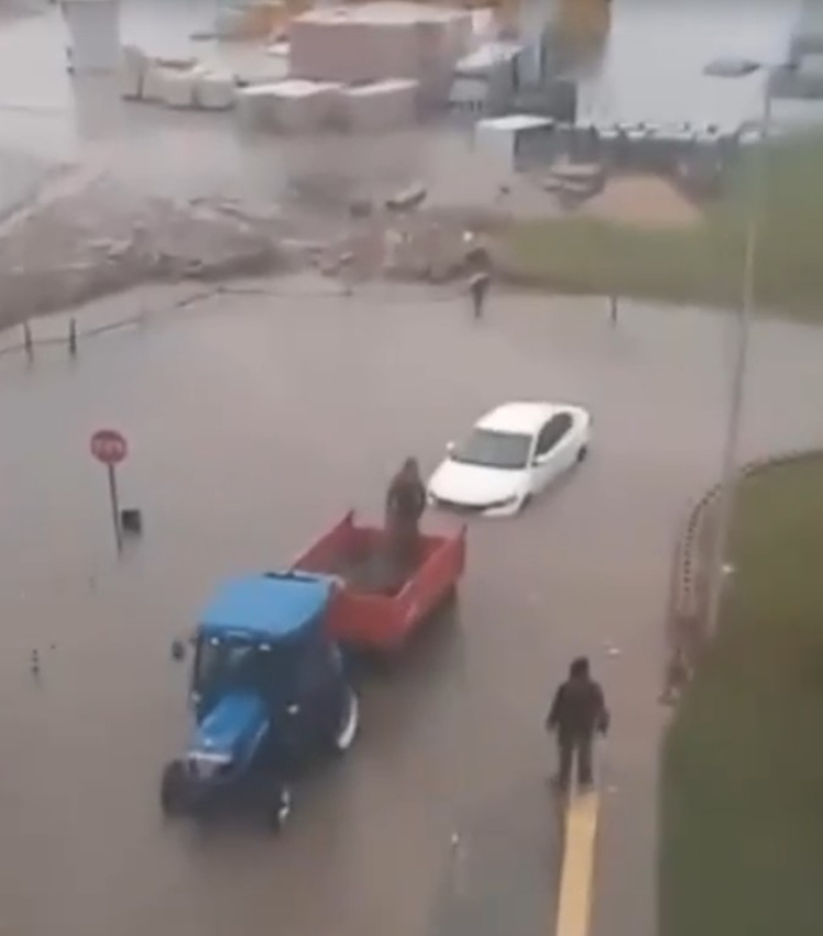 Bölgede yaşayanlar birbirini arayıp, park halindeki araçlarını çekmesi için uyarırken, o anlar da cep telefonu kamerasıyla görüntülendi.