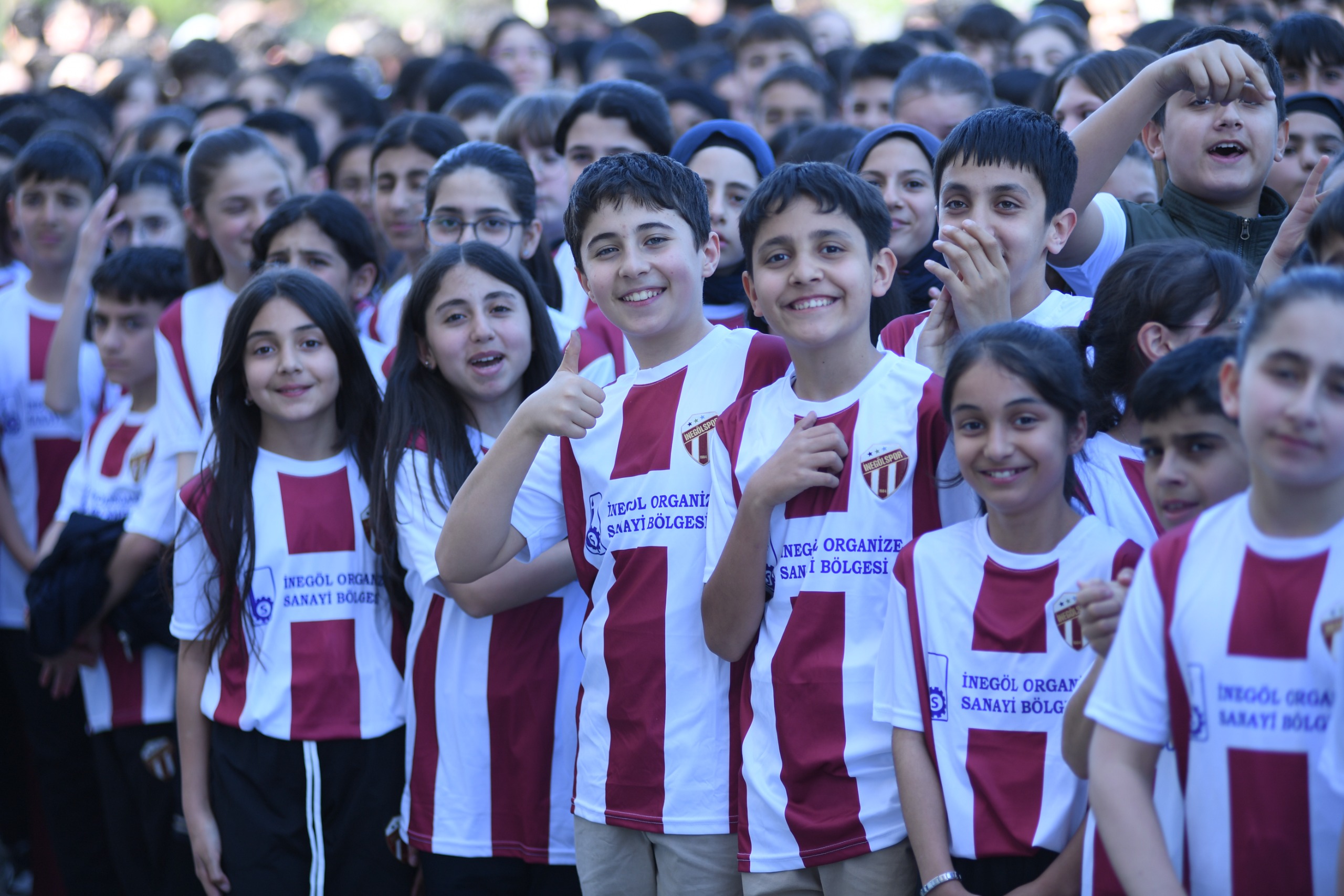 İnegölspor’un başlattığı “Bir Çocuğun Mutluluğu Dünyaya Bedel” kampanyası kapsamında Organize Sanayi Bölgesi Ortaokulunda 1.100 öğrenciye İnegölspor forması ile eşofman takımı hediye edildi.