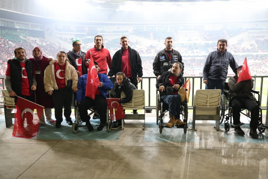 Maç boyunca büyük heyecan ve coşku yaşayan engelli bireyler milli maçı stadyumdan izlemelerini sağlayan Osmangazi Belediye Başkanı Erkan Aydın’a teşekkür etti.