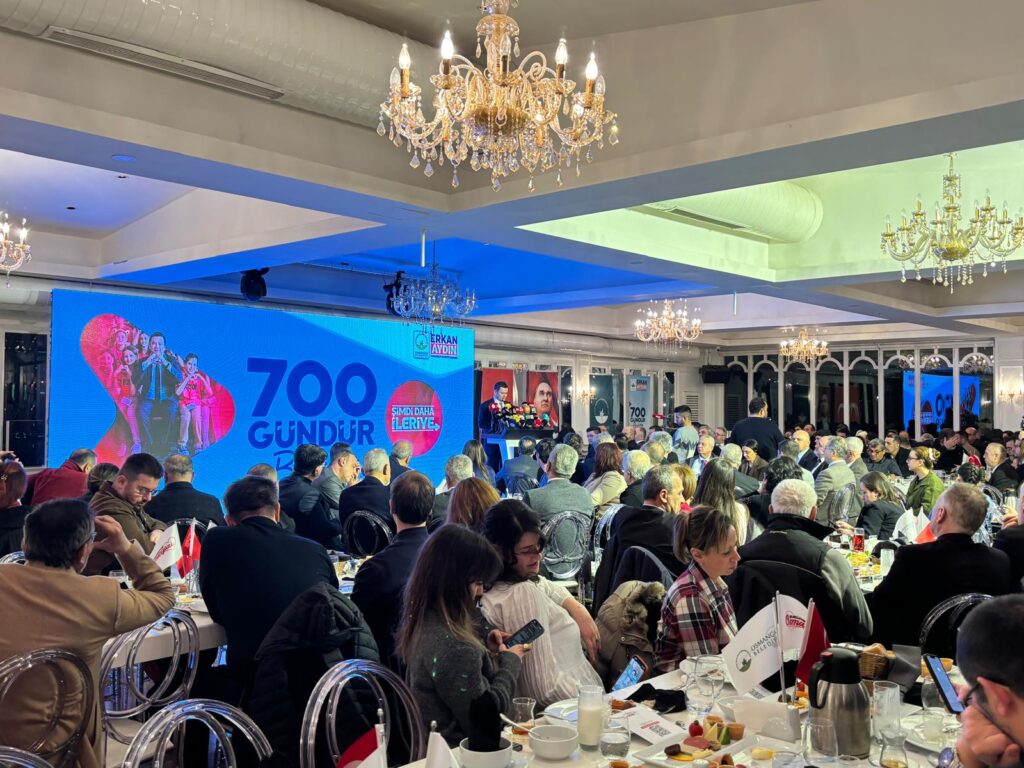 Seçim döneminde açıklanan projeleride vurgulayan Aydın, iki yılda önemli bir bölümünün tamamlandığını söyleyerek, “İki yıl önce yine bu salonda proje toplantısı yaptık ve vaatlerimizi sizlere sunduk. Bugün göreve gelişimizin 700’üncü gününde tekrar birlikteyiz. Toplam 58 vaadimiz vardı. Bunların 40’ını tamamladık. Yani yaklaşık yüzde 70’ini hayata geçirdik. 13 proje üzerinde çalışmalarımız devam ediyor, 5 projeye de önümüzdeki süreçte başlayacağız” dedi.