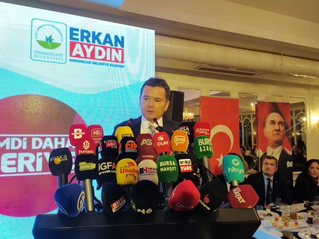 Osmangazi Belediye Başkanı Erkan Aydın, görevde geride kalan 700 günü değerlendirmek ve ilçenin geleceğine yönelik hedeflerini paylaşmak amacıyla bir basın toplantısı düzenledi. Program öncesinde gerçekleştirilen iftar buluşmasında protokol üyeleri ve basın mensupları bir araya geldi.