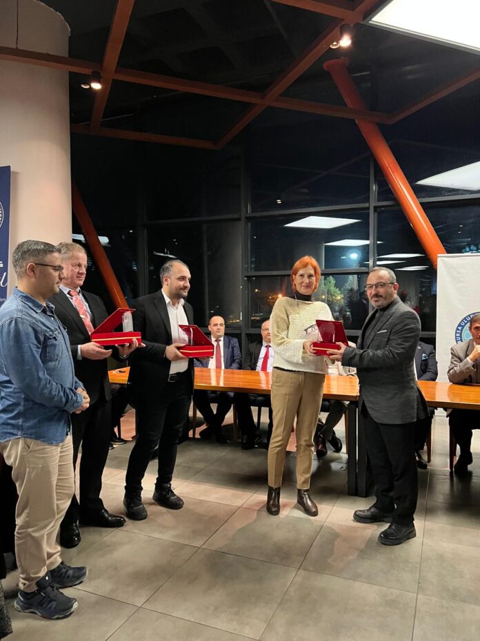 Programda yüksekokula yıllardır destek veren ve öğrencilerin uygulamalı eğitim süreçlerine aktif katkıda bulunan firmalara plaket takdimi gerçekleşti. Öğrencilere staj imkânı sunarak mesleki becerilerini geliştirmelerine destek olan firma sahiplerine takdim edilen plaketler, üniversitenin sektöre duyduğu teşekkürün ve sürdürülebilir işbirliği anlayışının sembolü olarak nitelendirildi.